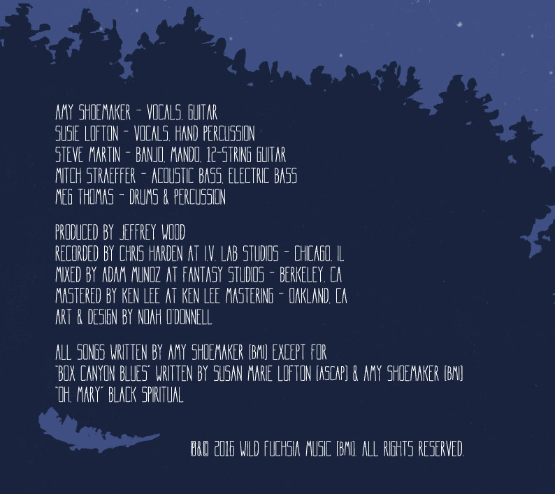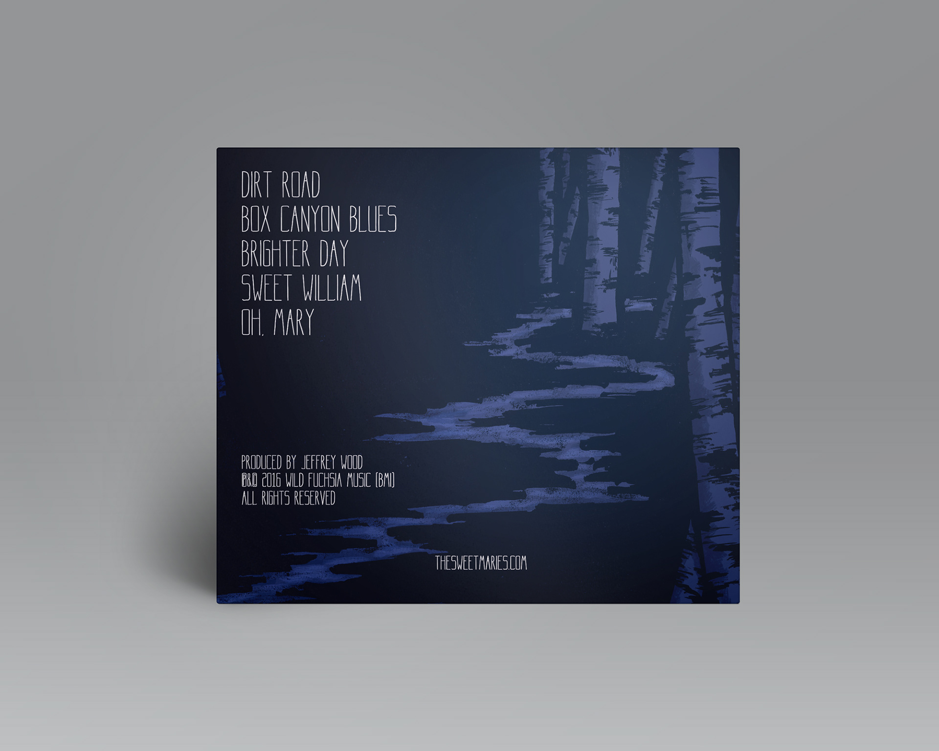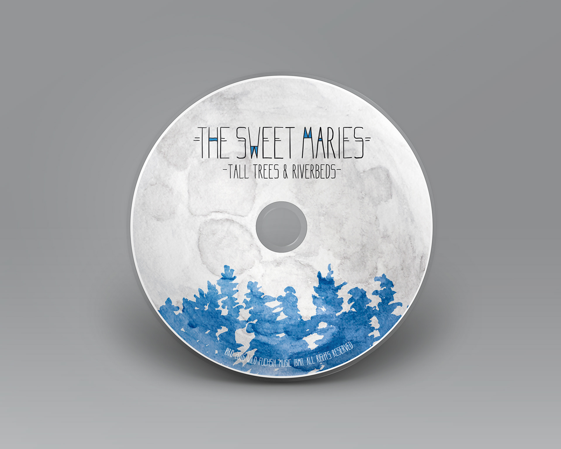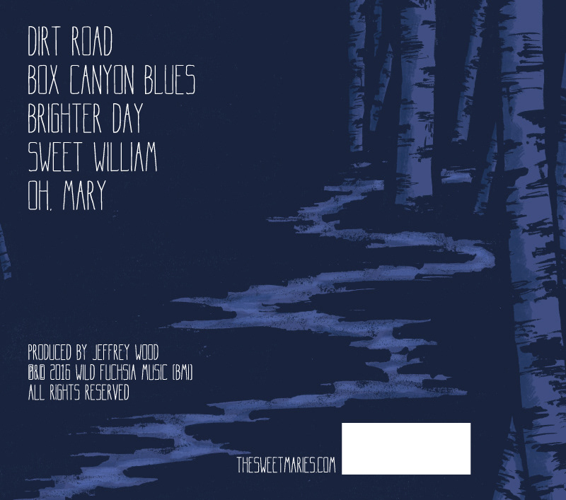 " for client The Sweet Maries. Inner and outer jacket art painted with India ink and brush, colored digitally, and a water-color/graphite full moon for the disc.